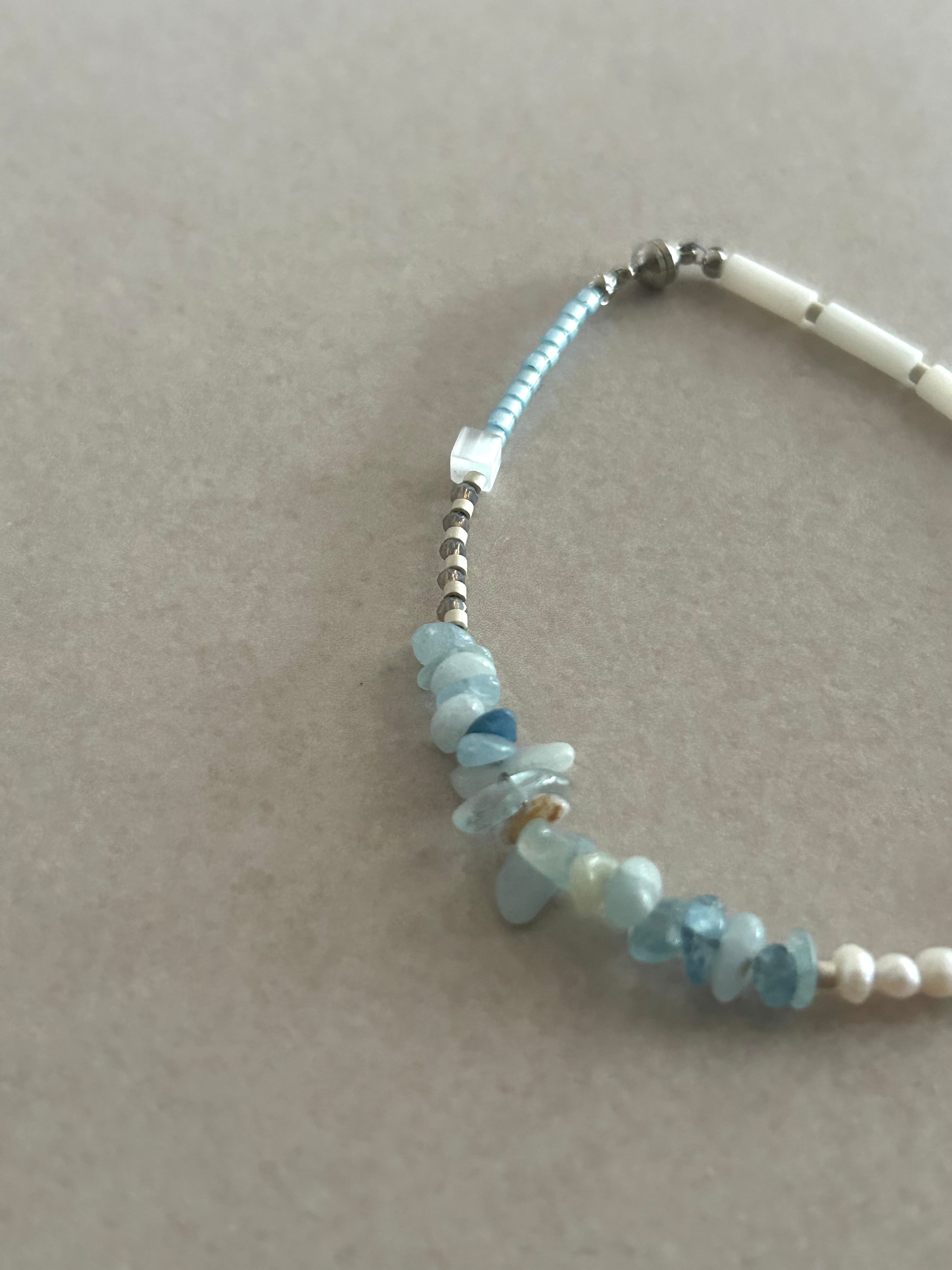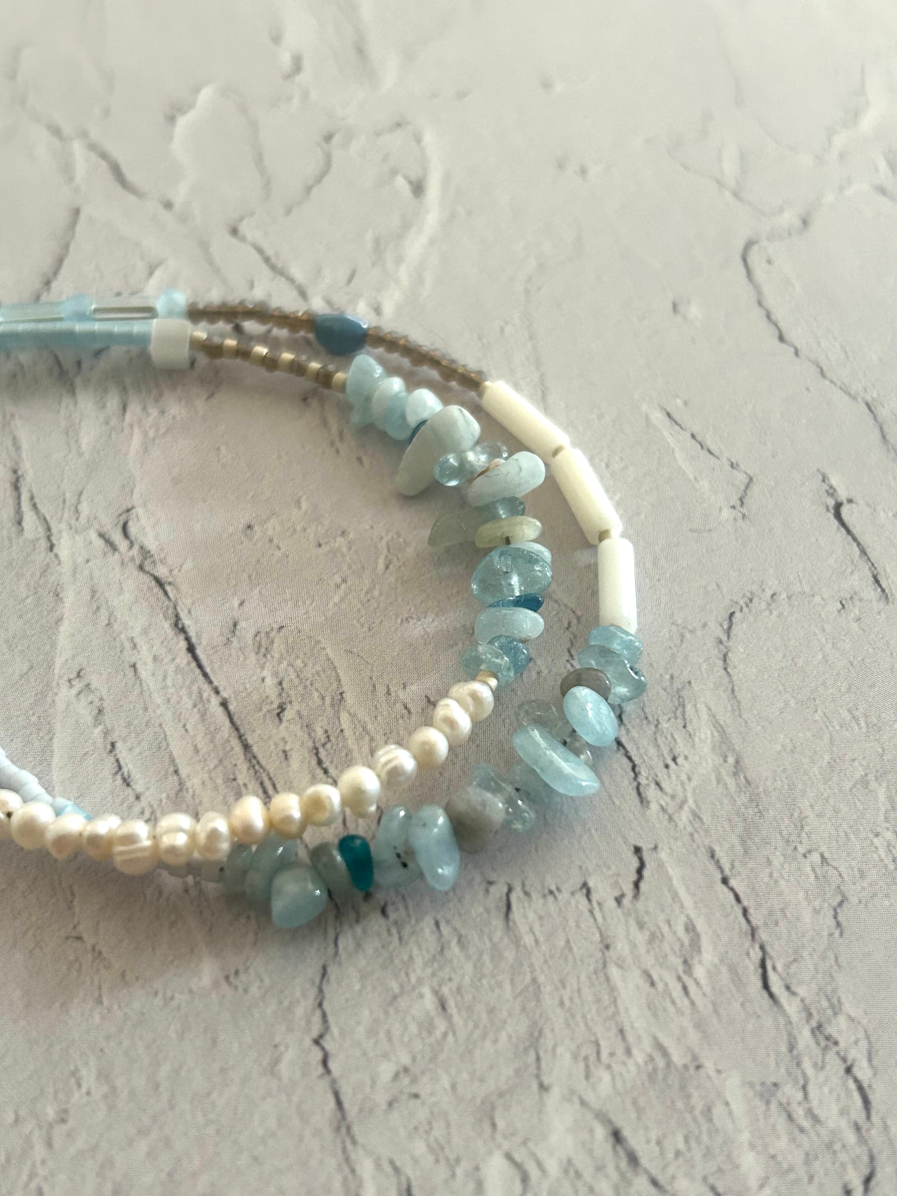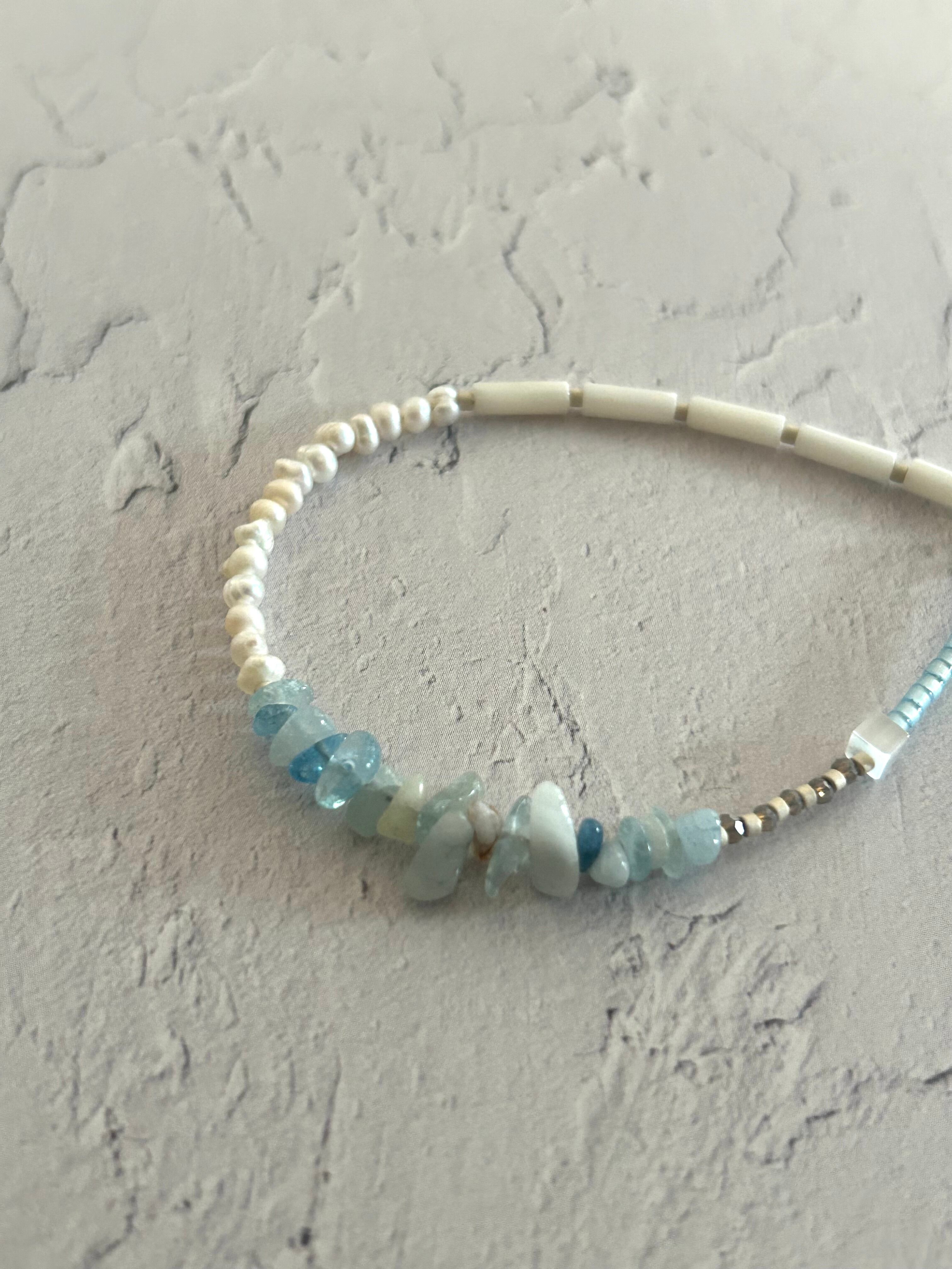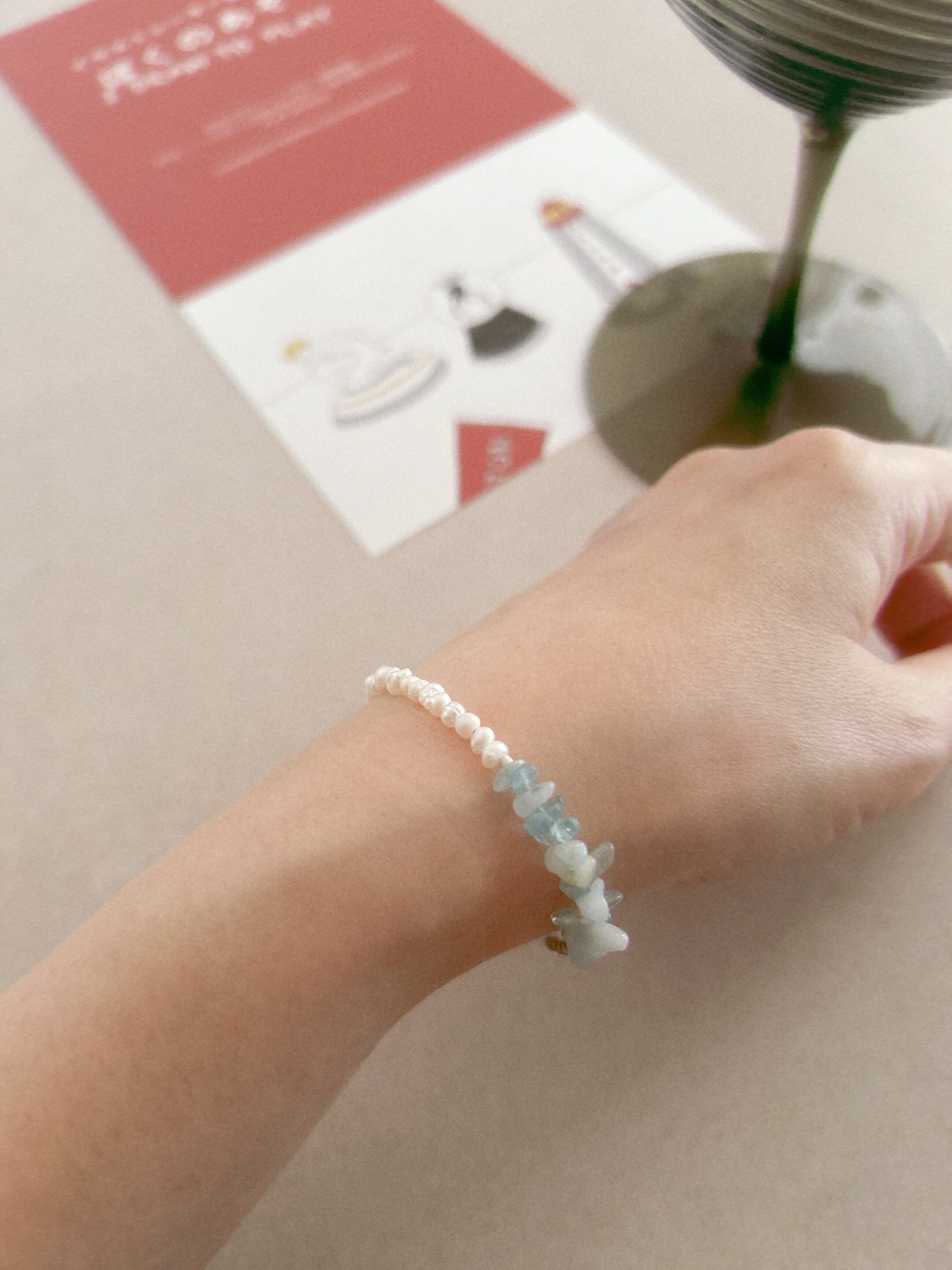 Blue アクアマリンブレスレット… 淡水パール 天然石 ビーズ