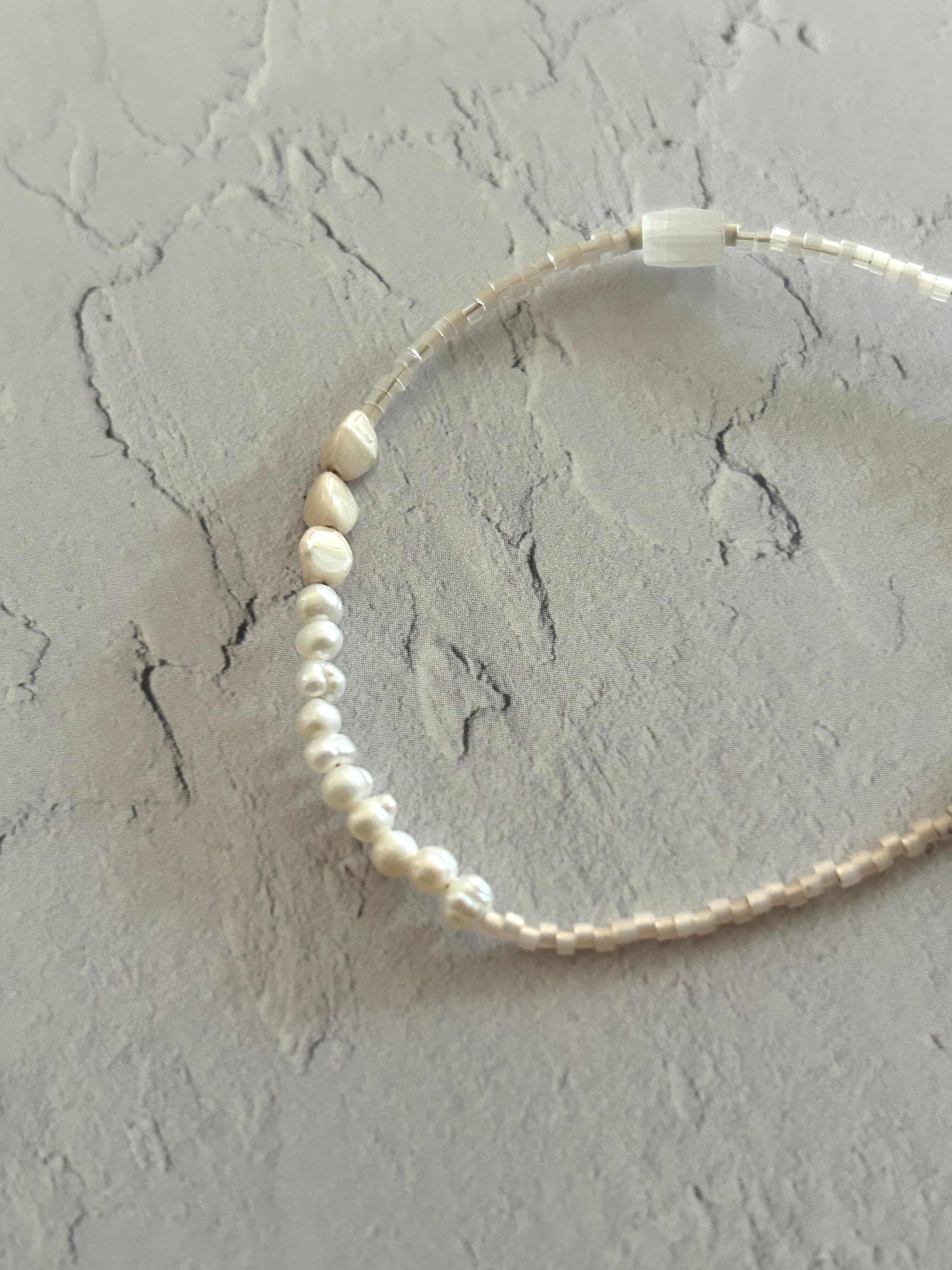淡水パールとこだわりのビーズをアレンジしたブレスレット